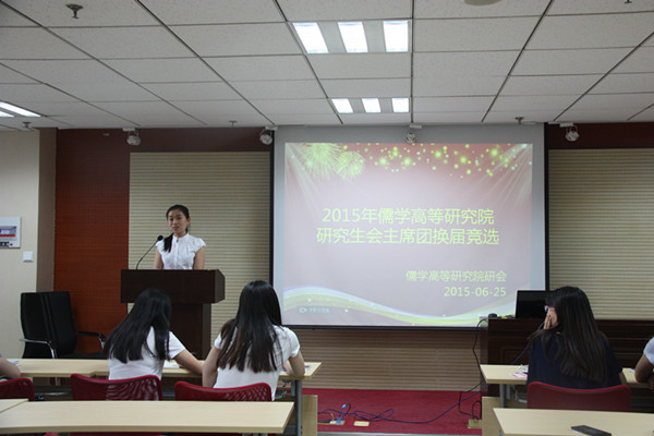 一贯以来积极进取、团结协作的精神,踊跃参与集体活动,在更好地服务同学的同时提升自己的综合素质。随后,马晓潇就本届主席团过去一年的工作做了简明扼要的总结,并且介绍了换届大会的整体流程。接下来,竞职演讲正式开始。九位候选人一一上台,参与竞选的同学们不仅向大家介绍了自己以往的学生工作经历,也就自己在过去一年研会工作中遇到的问题、研会未来的发展方向等提出了自己的想法,其中不乏兼具新意与操作性的意见,充分展示了同学们对日常学生工作的负责态度,以及对本次换届竞选的重视。最后,本着公平、公正、公开的原则,大会进行了现场唱票。新一届主席团五名成员的具体人事安排与分工将择日公布。