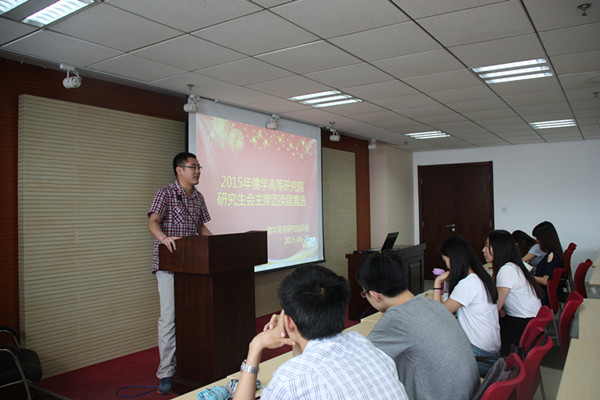 研究生会在中心校区召开2015 年主席团换届大会。此次换届将评选出新一届主席团成员,包含主席、常务副主席、秘书长、副主席等五个职位。本次会议由现任研究生会主席马晓潇主持,海角社区