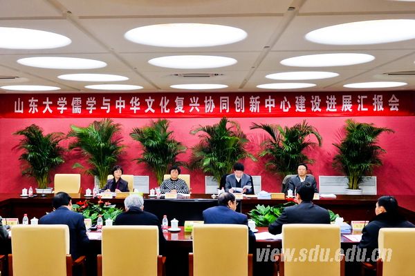 并组建儒学与中华文化复兴协同创新中心的重大意义,表示这是围绕国家战略发展需求、弘扬中华传统优秀文化的重大举措,同时也是整合学科优势、人才优势、区位优势以及山东省资源优势非常好的策划和集成。李卫红谈到,协同创新中心的工作很有特色和亮点:形成了自己的一些创新平台如尼山论坛;与国外同行有着很好的交流与合作;创新工作机制,设有专门的基金;潜心治学,在目标制定方面有着十年磨一剑的精神;整合了众多校内优势资源。李卫红说,从最初的顶层设计、组织实施来看,儒学与中华文化复兴协同创新中心工作做得很好,接下来关键是更好地进行策划,不断完善和创新,教育部也将全力支持中心建设。