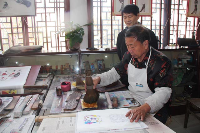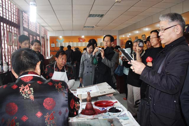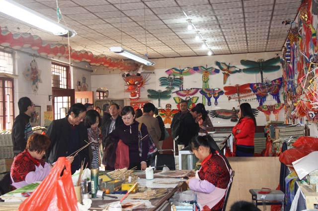 参观杨家埠木刻年画博物馆,了解年画与风筝制作流程,国外学者纷纷购买年画艺术品。