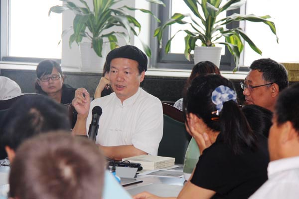 林安梧教授讲座的题目是《“话语”“思考”与“方法”:中国人文诠释学的根本论题——关于文史哲研究的一些心得和理解》。在报告中,林教授提出了中国人文研究之话语:古典生活话语、古典学术话语、现代生活话语和现代学术话语,林先生认为,雅与俗,古典与现代,生活与学术话语之间是彼此联系而不是断裂的。作为研究者,不能只停留在对古典话语了解的层面上,而应把古典话语转化为现代学术语言。林教授说:“中国哲学如果不做这个工作,将会固步自封找不到出路。把古典话语转化成现代话语,或者不能尽其义的充分表达其意蕴之总体,但却因与现实世界沟通在一起而起了新的作用。”
