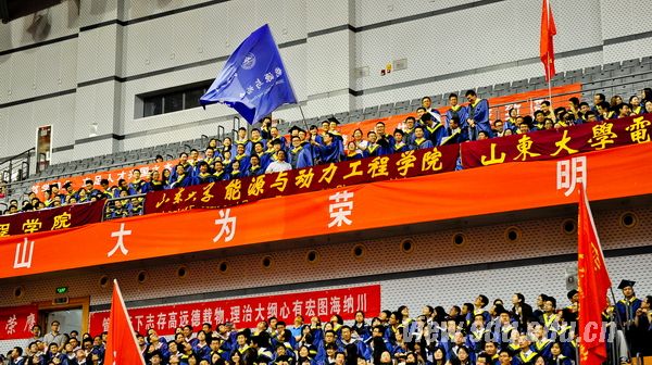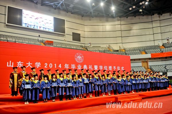 2014届毕业生学位授予决定》。各学院院长分别上台为毕业生送上深情寄语。不同的形式,共同的祝愿与嘱托;不同的风格,相同的期盼与希望。院长们用最温暖的方式为毕业生们送别,为毕业生们祝福,带着眷恋与不舍,伴随着真情与寄托。毕业生的现场互动则更进一步诠释了师生之间浓烈的深情厚谊。“同追国民健康梦,共叙青春不了情”、“养天地正气,担人间正义”、“念山大桃李芬芳,护中华之康健”、“请留管院里,心系大天地”、“追寻生命之光,放飞青春梦想”、“挥手道珍重,梦想再起航”……各个学院各具特色的横幅标语写满了对母校的不舍和祝福,寄托了对未来的信心和期望。