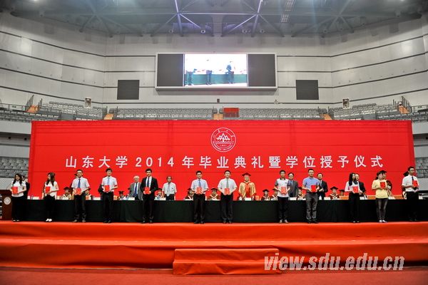 关于表彰2014届优秀毕业生和赴西部、基层、国家重点行业就业毕业生的决定》,优秀毕业生代表上台领奖。学位授予仪式上,陈炎宣读了《海角社区