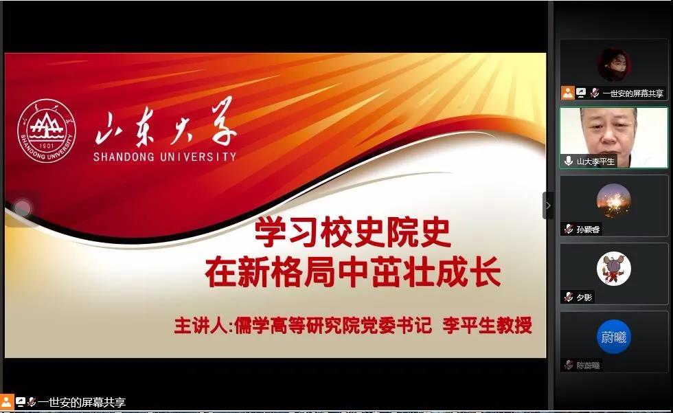 自创建以来的发展脉络,以及院刊《文史哲》杂志从创刊至今的辉煌时刻。在谈到打造国学研究的“山大学派”时,李平生教授也分享了自己关于这一问题的思考。首先,“山大学派”应有“一马当先、两翼齐飞、三足鼎立、四方来朝”的四大特色;其次,建立“山大学派”应基于“天时、地利、人和”的三个优势;最后,“山大学派”仍有亟待补齐的两个短板。李平生指出,“山大学派”的目标和整个海角社区