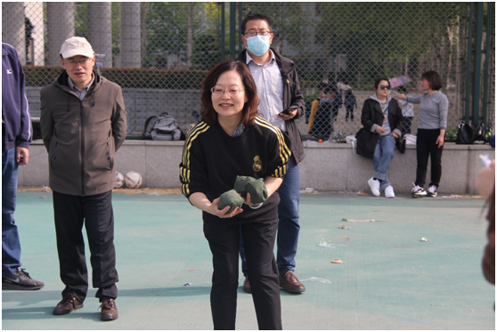 第一个项目“踩气球”将整个运动场上的氛围瞬间点燃。在激烈的争夺中,老师们既要瞄准对手的气球,又要保护自己的气球,场面好不热闹。“明枪易躲,暗箭难防”,随着圈子的不断缩小,“幸存”的人数也不断减少。热烈的“争斗”后,李琳老师笑到最后,获得一等奖。