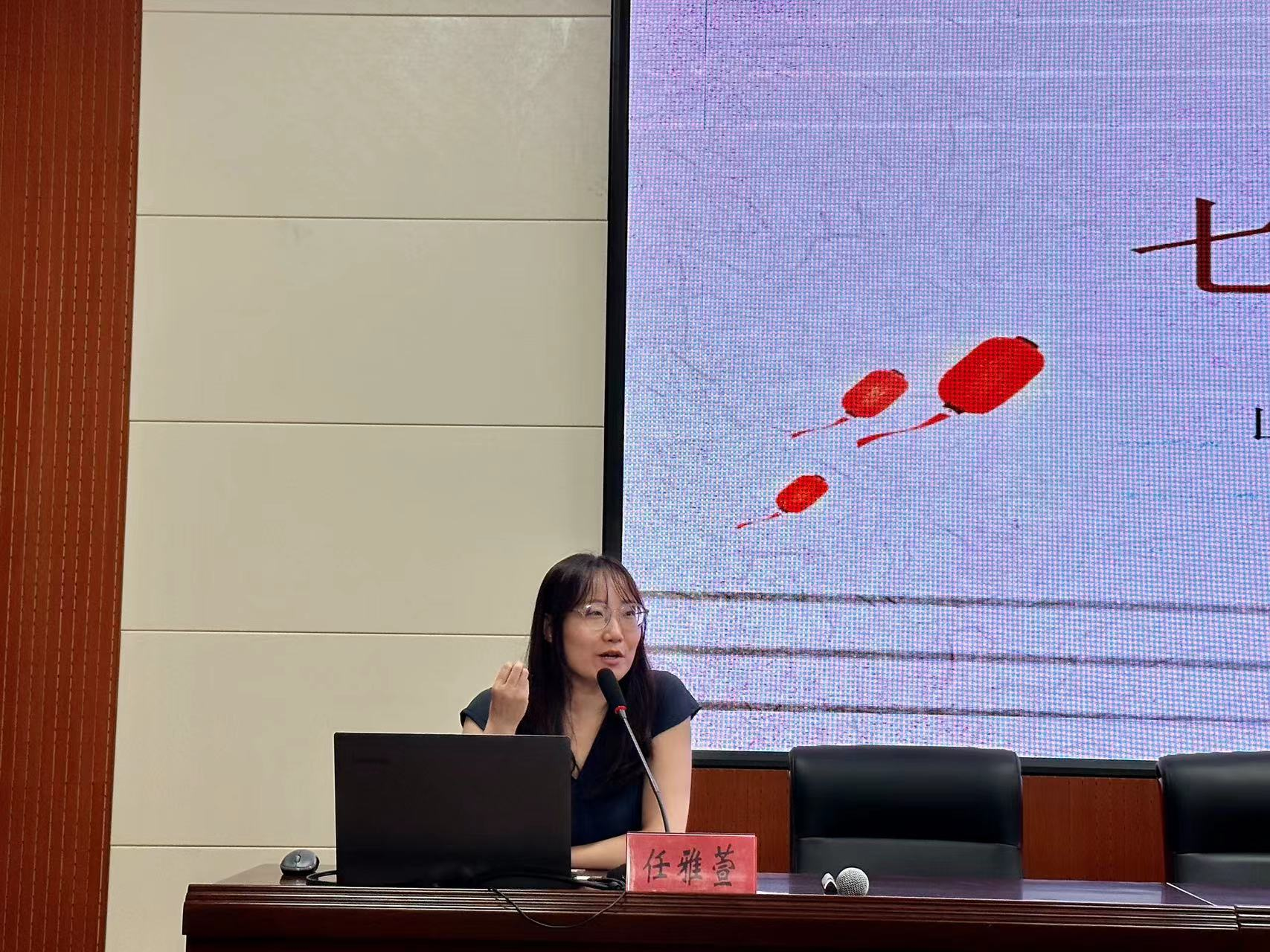 任雅萱为活动做了“七夕文化与中华美德”专题讲座。她围绕着“节日起源:七月七日如何成为节日?”“多元演变:七夕节?情人节?”“美德内涵:农时创造、关注女性、团圆和合”“传承创新:继承中发展”四个方面为大家作了一场精彩的主题分享。任雅萱表示,七夕文化以历史传说人物牛郎和织女为核心,在他们身上包含了中国传统的人伦道德、祭拜祈福里“天人合一”的宇宙观、爱情悲剧中“和而不同”的社会观、民俗活动中“人心和善”的道德观,以及忠贞与坚守的朴素爱情观。中华优秀传统文化博大精深、内涵丰富,美德文化是其中一个重要组成部分,要深入开展“我们的节日”主题活动,实施中国传统节日振兴工程。任雅萱提出要丰富七夕传统节日文化内涵:第一,复兴传统乞巧内涵、重视手工实践;第二,阐释牛郎织女传说,强调爱情忠贞;第三,传承七夕成年礼俗,增强社会团结和谐,活跃与丰富地方民俗生活;第四,充分挖掘七夕节的诗词资源,弘扬中华优秀传统文化。任雅萱指出,大众对于传统节日所具有的仪式感和文化内涵的认可,是传统节日的魅力所在,是对中华美德的认同;要积极营造尊重民族传统节日,将传统节日的研究和保护有机地结合在一起,使传统节日不断得以传承和发展。