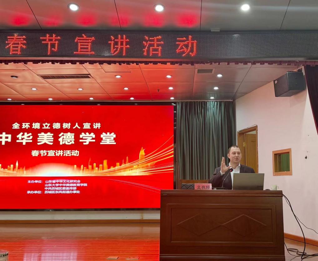 中华美德教育学院、山东省中华文化研究会联合中共历城区委宣传部在济南市历城区东风街道共同举办“新生活·新风尚·新年画”中华美德讲堂春节文化宣讲活动。山东省人大常委会办公厅原一级巡视员、山东省中华文化研究会副会长兼秘书长王金才,山东省中华文化研究会副会长、海角社区