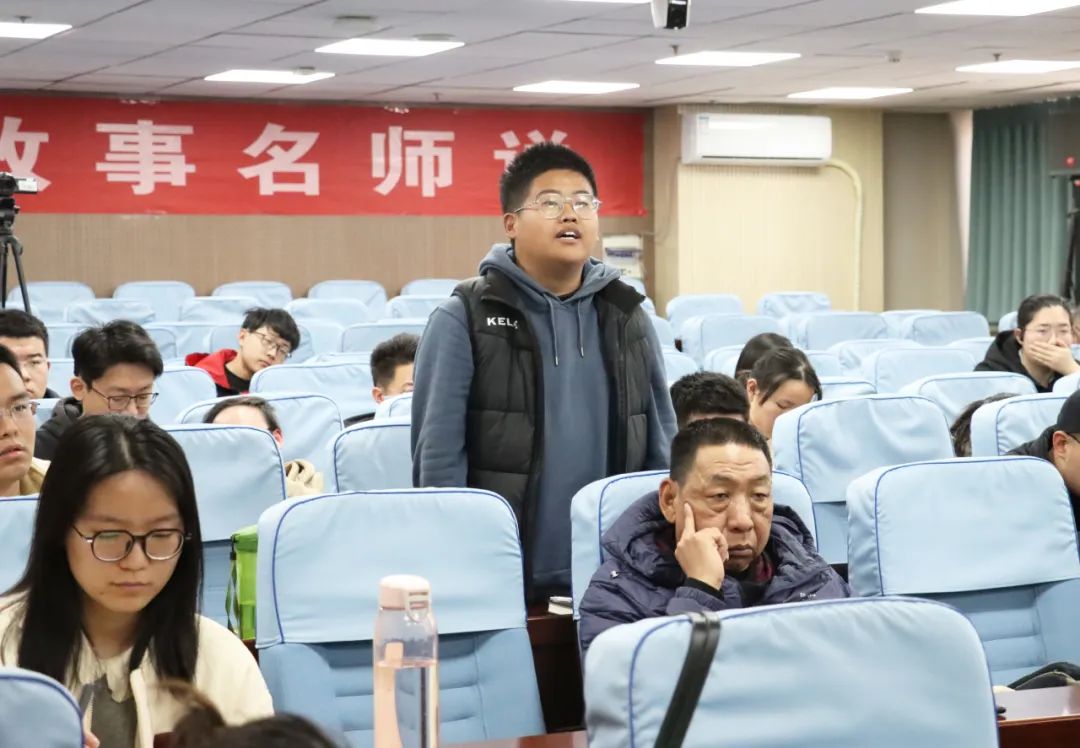 在提问环节,同学们踊跃发言,赵生群教授以“《史记》是实录是就整体而言”“司马迁既是爱憎分明的诗人也是十分冷峻的史学家”“将《史记》由史部放入子部完全没有必要且不应该”等精彩论述进行回答。随后,王学典教授对赵生群教授的解答表示赞同并就《史记》的“子”“史”分类问题和《史记》结构折射社会结构两个方面提出自己的见解。此次讲座在浓厚的学术氛围和热烈的掌声中圆满结束。