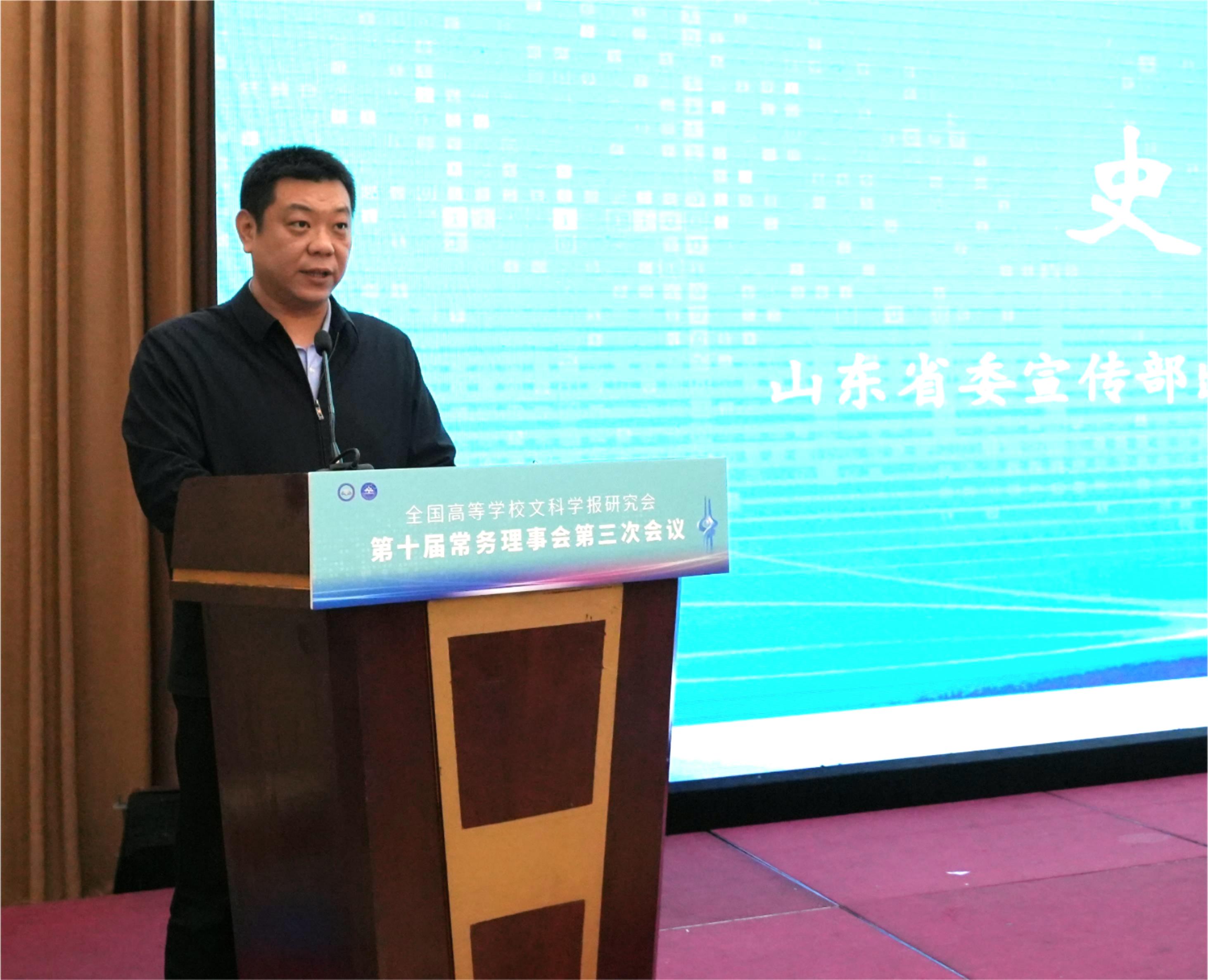 党委副书记李向阳、中宣部出版局期刊处一级调研员杨震林、山东省委宣传部出版管理处二级调研员史斌、第十届全国高等学校文科学报研究会理事长刘曙光致辞。