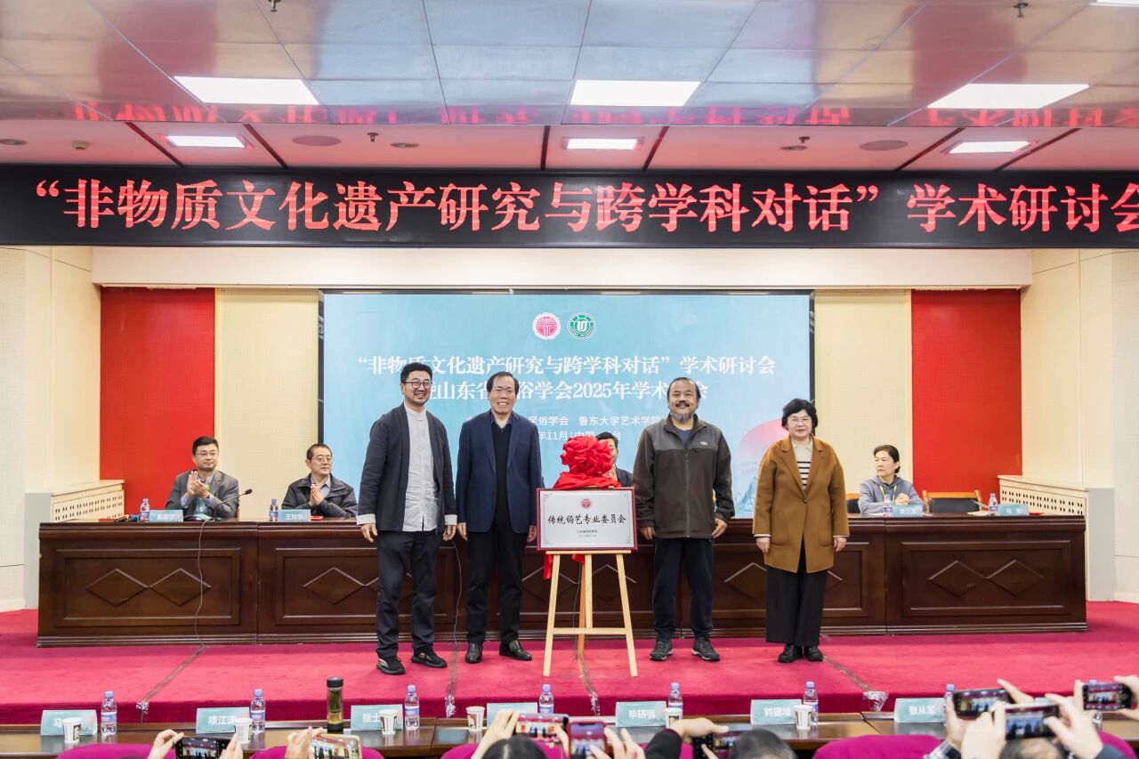 在开幕式上,学会举行了“山东省民俗学会传统锔艺专业委员会”揭牌仪式,郭永军、张士闪、马新、耿海胜共同为“山东省民俗学会传统锔艺专业委员会”揭牌。传统锔艺代表性传承人耿海胜担任专委会主任。