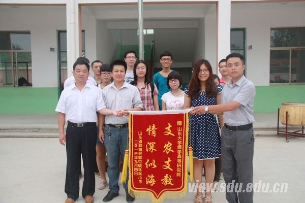 留守儿童的“求知梦”是“中国梦”的重要组成部分。山东省政府“联百乡包千村”的“第一书记”制度则为山大学子的实践提供了平台。本次参与支教的同学们在志愿服务的实践中奉献了爱心,砺练了自我,并跟随“第一书记”们在基层了解了社情民意,服务了当地群众,与当地师生建立了深厚的友谊。此次活动得到了山东省检察院领导的高度重视。在活动的尾声,正在当地视察的山东省检察院检察长吴鹏飞百忙中巡视了支教团的教学工作,对此次活动予以充分肯定,对同学们的服务意识和志愿精神予以赞许。临行前,“第一书记”及当地师生等人还为大家举行了送别会,并赠送了锦旗。