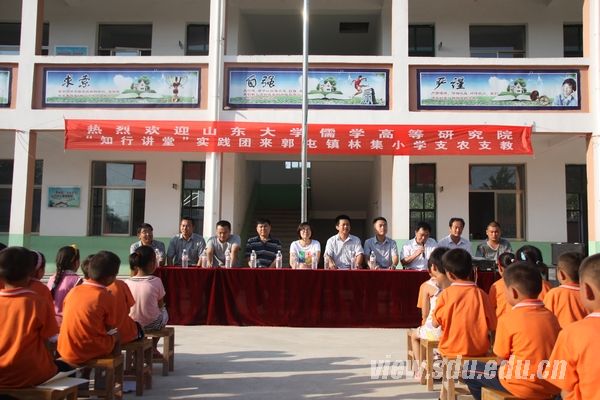团委负责人王敏带队,集结了院研究生会的骨干力量和国学班“尼山学堂”本科生的优秀代表。活动得到了郓城县郭屯镇人民政府领导和山东省检察院扶贫“第一书记”们的大力支持。活动期间,在当地视察的山东省检察院检察长吴鹏飞巡视了教学工作,并对本次活动给予赞许。