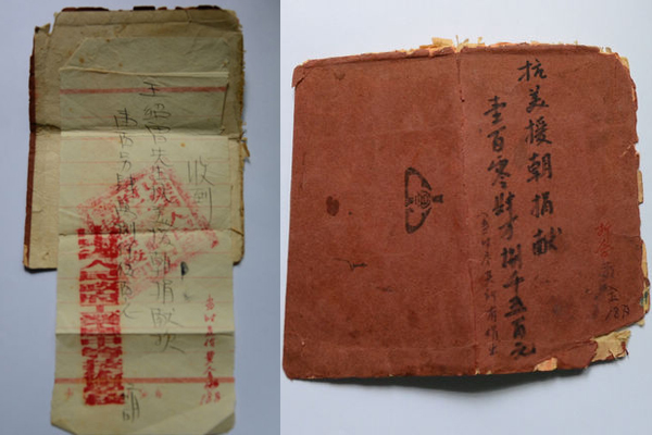 抗美援朝时期,穆咏娟与王绍曾尽其所有,捐出一百零四万八千三百元,在当时约折合黄金18两,图为捐款收据