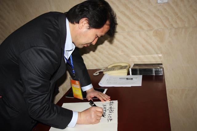 徐坰遥教授为中华传统文化体验馆留下书法作品,众人欣赏不已