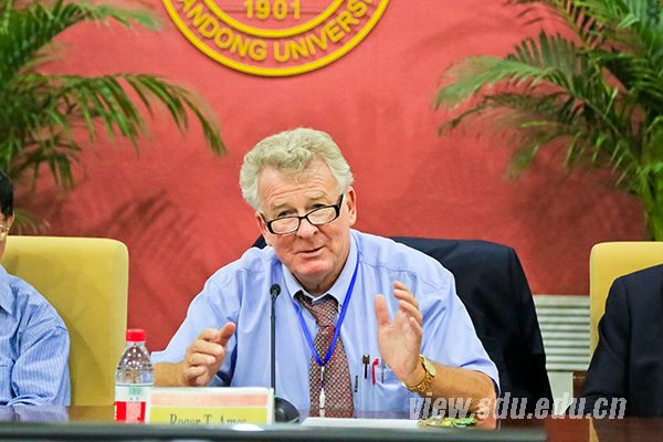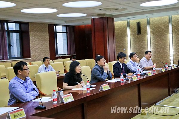 校长张荣在中心校区会见了参加第三届尼山世界文明论坛的境外知名学者代表和联合国及国际组织官员,副校长娄红祥主持活动。