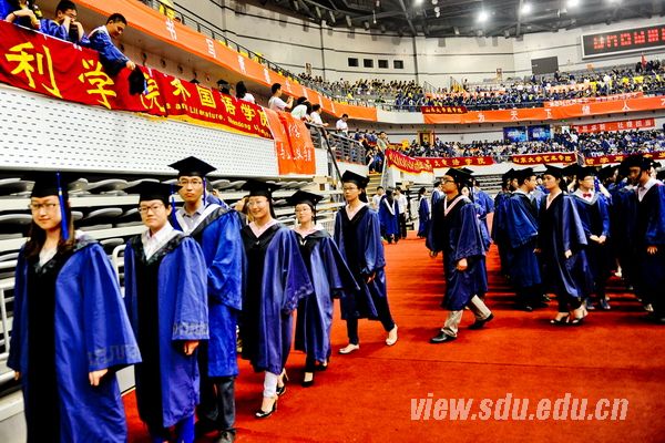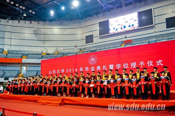 2014届毕业生学位授予决定》。各学院院长分别上台为毕业生送上深情寄语。不同的形式,共同的祝愿与嘱托;不同的风格,相同的期盼与希望。院长们用最温暖的方式为毕业生们送别,为毕业生们祝福,带着眷恋与不舍,伴随着真情与寄托。毕业生的现场互动则更进一步诠释了师生之间浓烈的深情厚谊。“同追国民健康梦,共叙青春不了情”、“养天地正气,担人间正义”、“念山大桃李芬芳,护中华之康健”、“请留管院里,心系大天地”、“追寻生命之光,放飞青春梦想”、“挥手道珍重,梦想再起航”……各个学院各具特色的横幅标语写满了对母校的不舍和祝福,寄托了对未来的信心和期望。