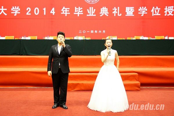 关于表彰2014届优秀毕业生和赴西部、基层、国家重点行业就业毕业生的决定》,优秀毕业生代表上台领奖。学位授予仪式上,陈炎宣读了《海角社区