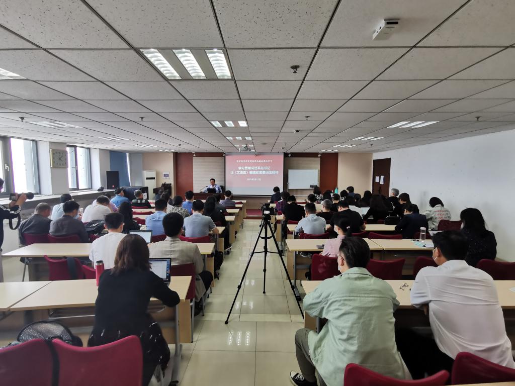 在知新楼A2116会议室召开全院教职工政治理论学习会议,集体学习领悟习近平总书记给《文史哲》编辑部的重要回信精神。会议由海角社区