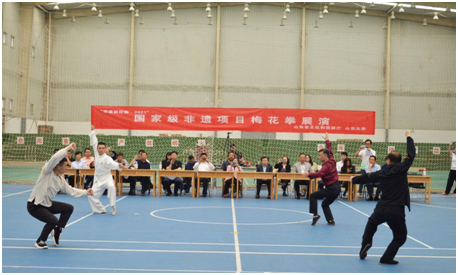 教授)《“在乡的江湖”:近世冀南乡村梅花拳文武场的组织传统》;施爱东(中国社会科学院研究员)《< 侠客行>的故事结构与游戏规则》彭伟文(浙江师范大学副教授)《武侠影视作品人物形象的嬗变及其背后的“江湖”逻辑》;赵丙祥(中国政法大学教授)《明清武艺群体的拟制宗族》,戴国斌(上海体育学院教授)《暴力治理:中国武术“德、智、力”文化基因及其表现》,李生柱(贵州师范学院副教授)《挂在墙上的“礼制”:黔湘四十八寨“天地君亲师”香火牌研究》;陈进国(中国社会科学院研究员)《地方信仰与民间医疗》,王海鸥(山东师范大学教授)《地方习俗文化视域下民俗体育的本质》;张国栋(西南大学教授)《纪念、崇敬和娱乐的朝圣之旅:后马庄梅花拳的亮拳表演》,唐韶军(鲁东大学副教授)《从“以武摄人”到“以德服人”——论民间武人制造“隐权力”的谋略行为》,张艳(齐鲁师范学院副教授)《村落武术在“三治融合”乡村治理体系中的作用——以鄄城县王坊村梅花拳为个案》。5月16日下午,众位专家学者前往济南章丘区文祖街道三德范村,实地考察了儒学讲堂和“四季拳”武术传统。