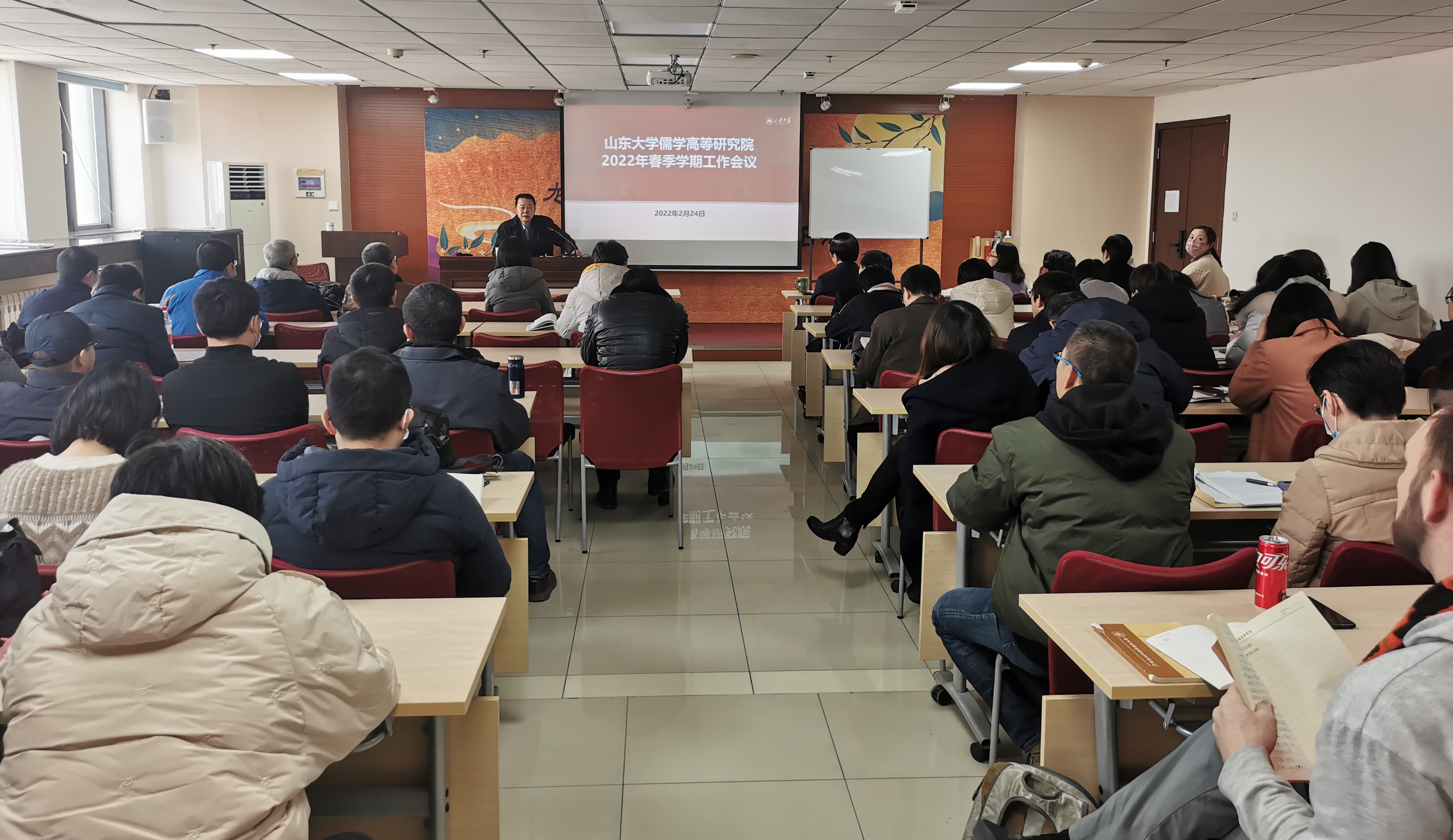 执行院长王学典对本学期工作进行了部署,全体教职员工参加会议。