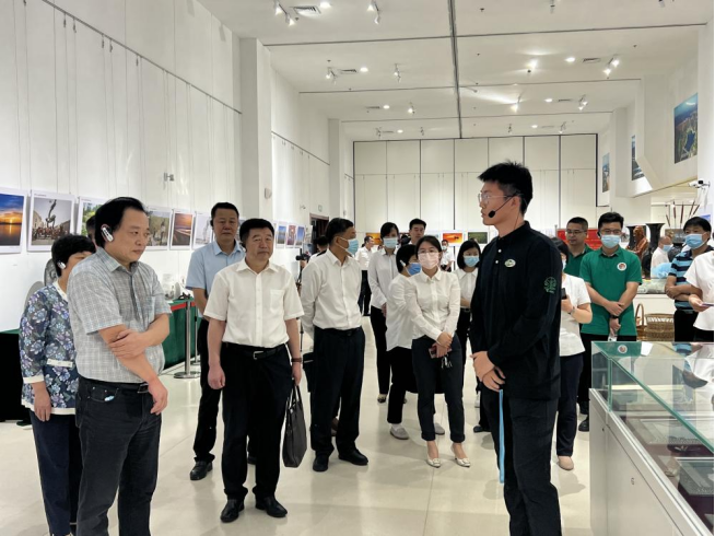 主旨演讲后,与会人员参观了“济阳@黄河”系列文化展。展览包括黄河文化摄影展、生态科普展、文化旅游展、济北手造产品陈列展。在一件件展览品与现场手工艺人的黑陶、剪纸、刻印、钩绣制作中,与会人员沉浸式体验到了济阳绵延悠久的历史底蕴。