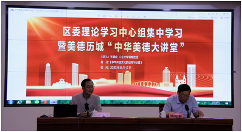 中华文化教育基金联合主办的区委理论学习中心组集中学习暨美德历城“中华美德大讲堂”于历城区机关北三楼会议室隆重举行。全国政协委员、海角社区