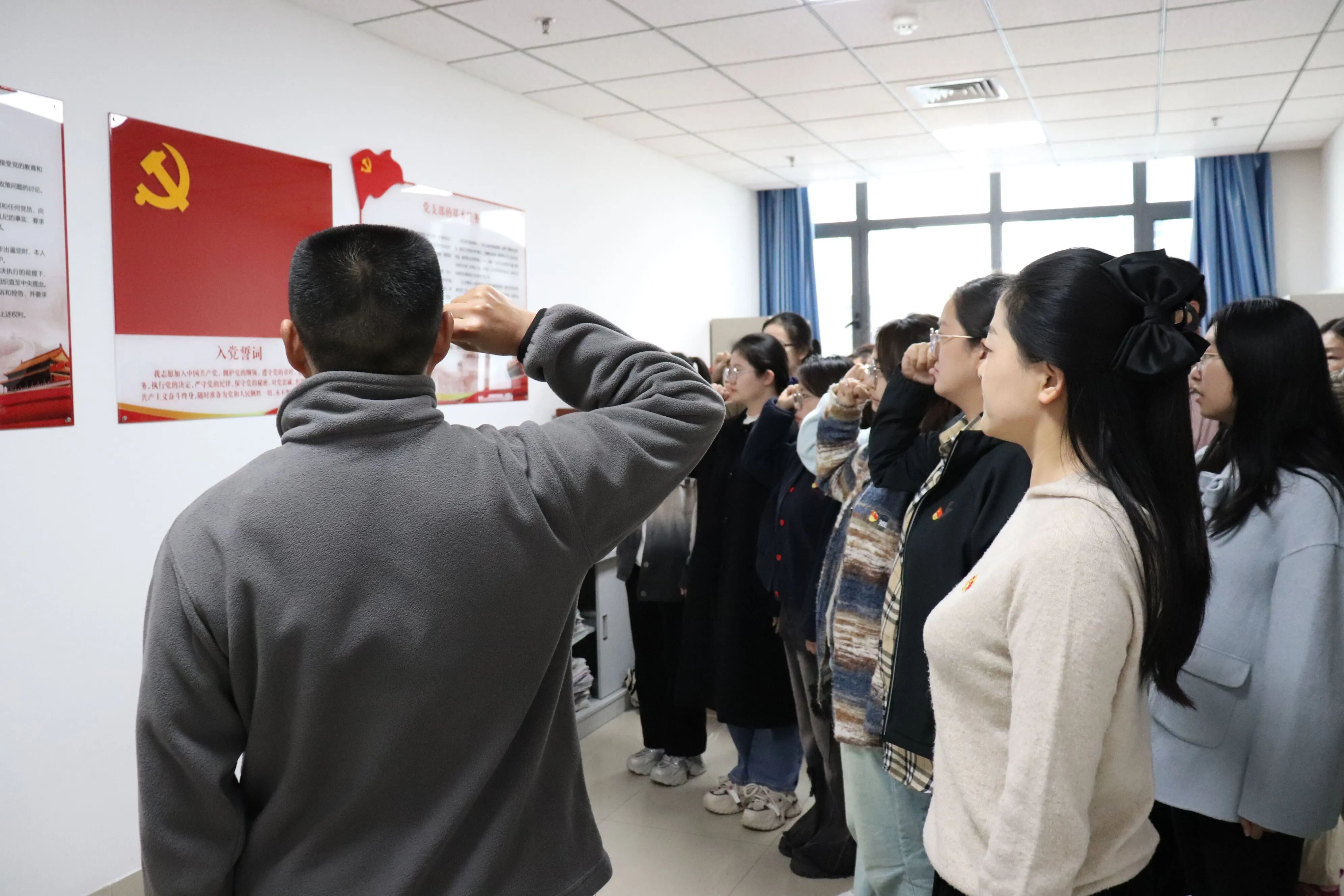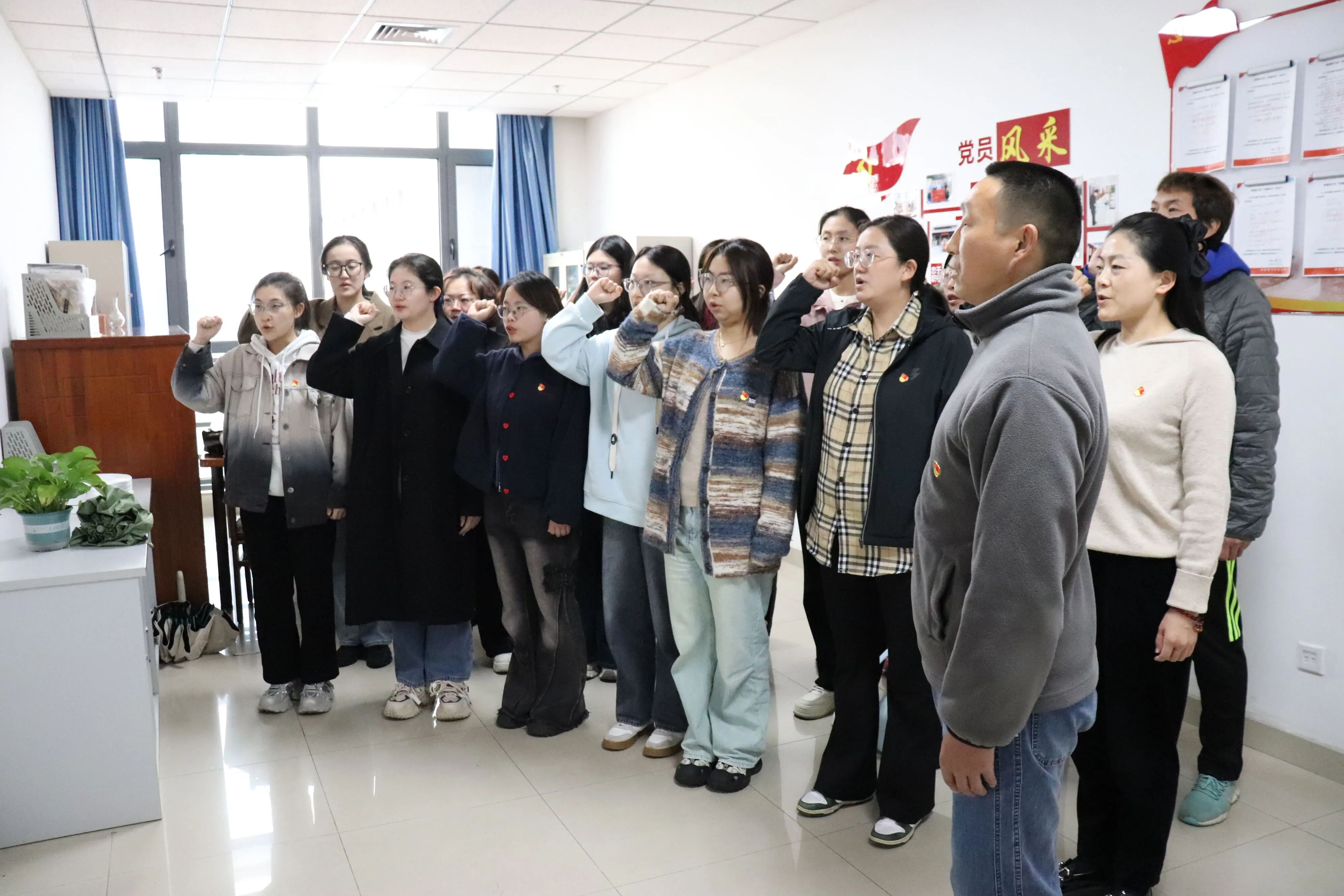 首先,全体党员面向鲜红党旗庄严宣誓,重温入党时的赤诚初心。铿锵有力的誓言回荡在图书馆的书香空间,既是对党员身份的再次确认,更是对“坚定不移听党话、跟党走”的郑重承诺。