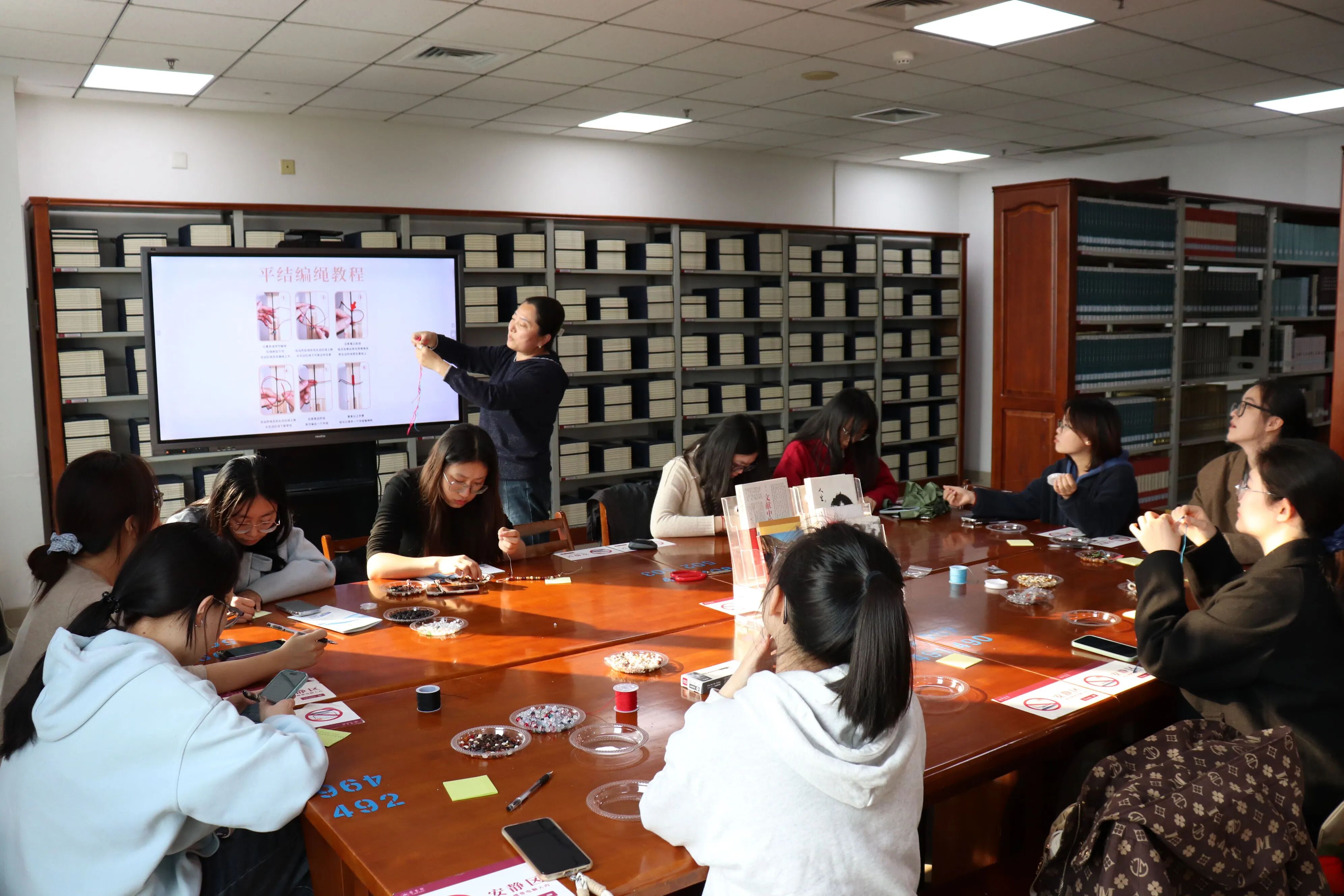 此次活动以“两个结合”为指引,融入中国结艺这一国家级非物质文化遗产,让党员在实践中感受中华优秀传统文化的魅力。在老师的指导下,大家学习了金刚结、平安结、蛇结等传统结型技法,沉浸式体验非遗技艺的精妙。蒋震图书馆党员馆员与青年学生党员相互协作,探讨了传统结艺中“结”与“和”的文化寓意,让中华优秀传统文化在互动中融入支部建设。