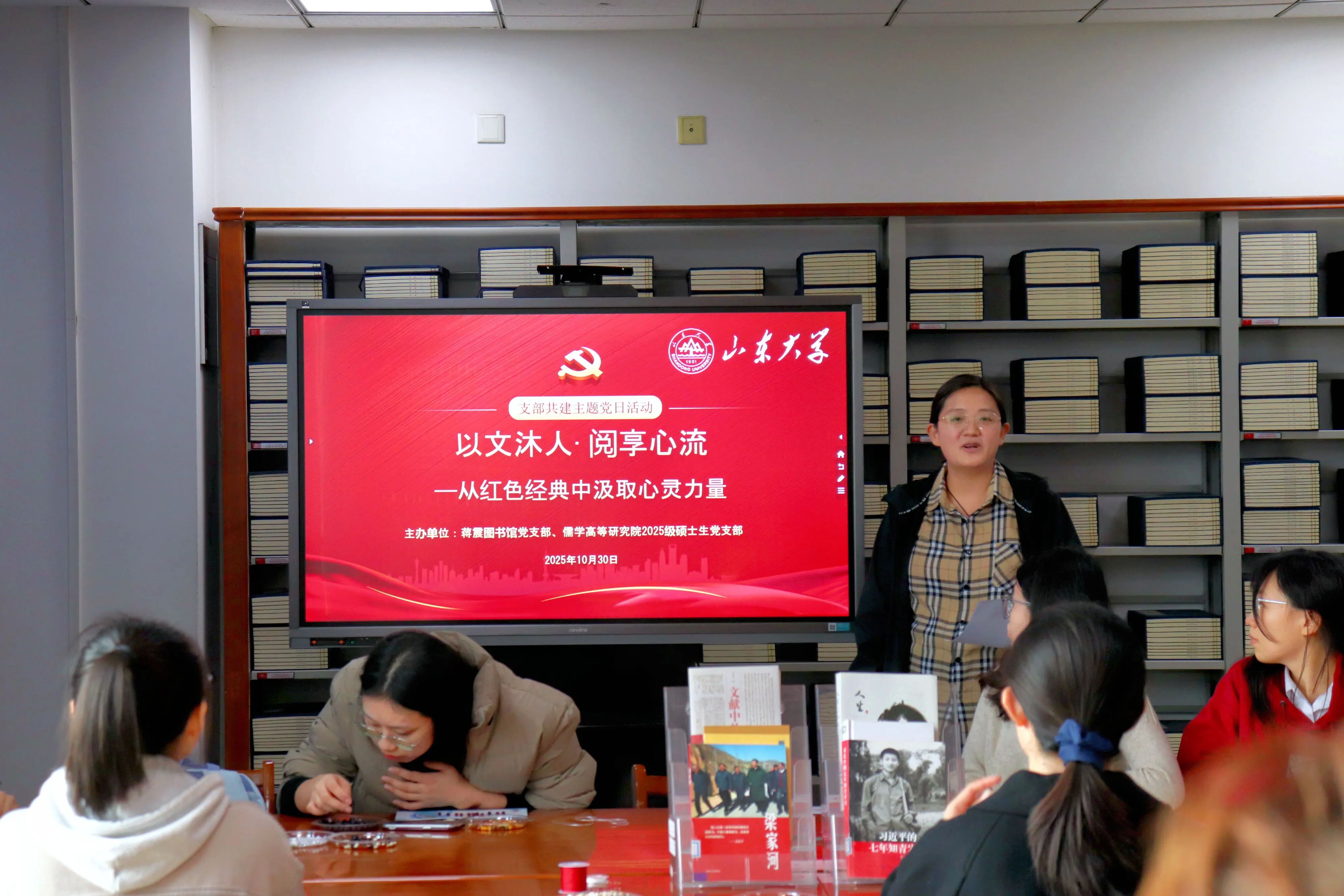 2025级硕士生党支部与蒋震图书馆党支部联合开展“以文沐人・阅享心流——从红色经典中汲取心灵力量”主题党日活动。近30名党员齐聚一堂,在红色浸润与实践体验中锤炼党性,践行习近平总书记对新时代青年的殷切嘱托。