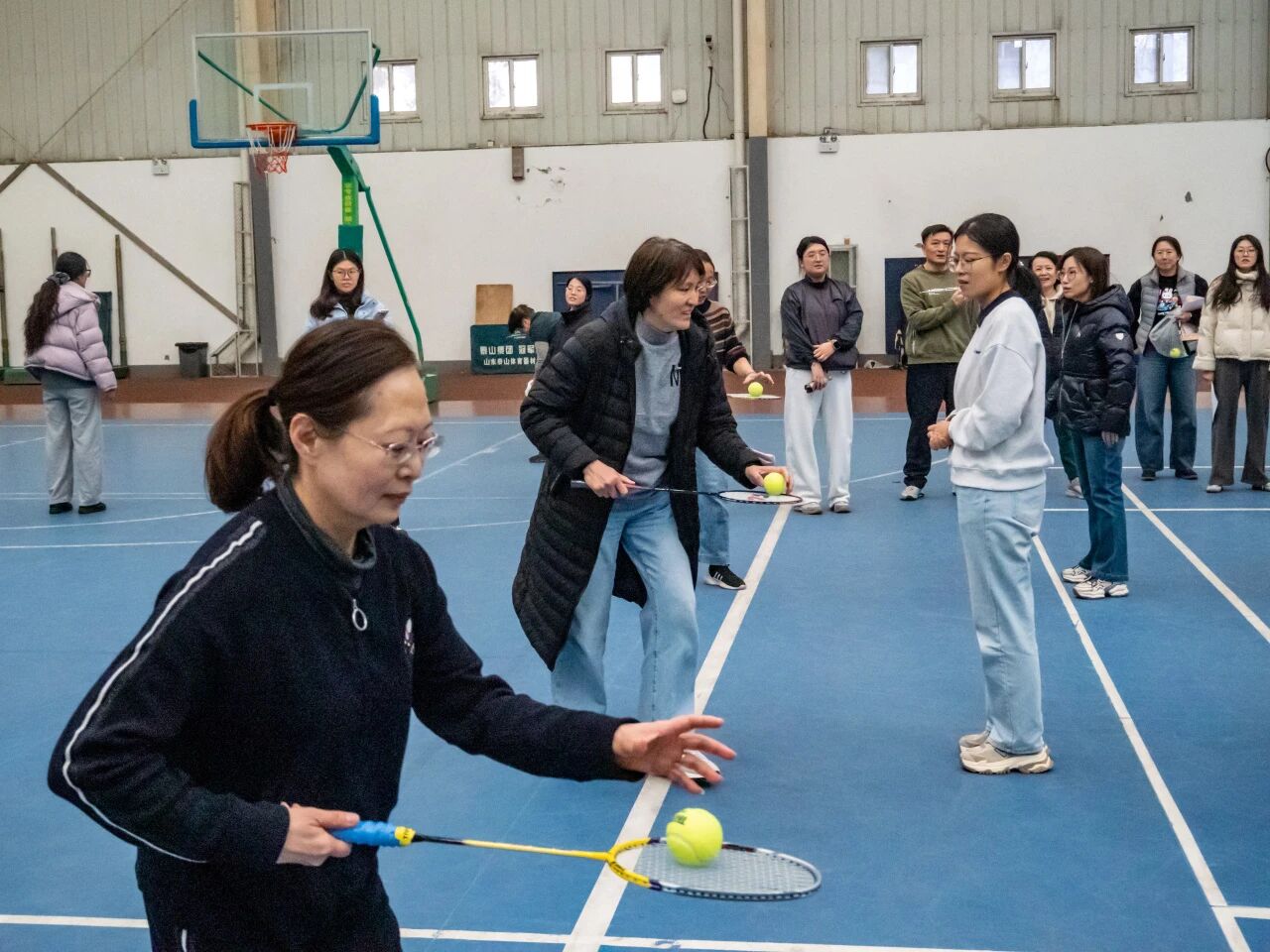 运动会的压轴项目是“曲回运球”。比赛中,老师们五人一组,用羽毛球拍运网球竞速。经过激烈角逐,李鹏程老师组凭借稳定发挥夺得该项目第一名。这场别开生面的运动会也在老师们的欢声笑语中落下帷幕。