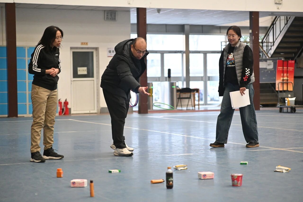 随着运动会正式启幕,首个项目“套圈”作为热场活动率先展开。老师们依次上场投掷,彩色圆环在空中划出弧线,现场不时爆发出掌声与喝彩。活动中,多位老师精准套中目标,赢得了特色奖品,现场气氛热烈活跃,为后续比赛揭开了序幕。